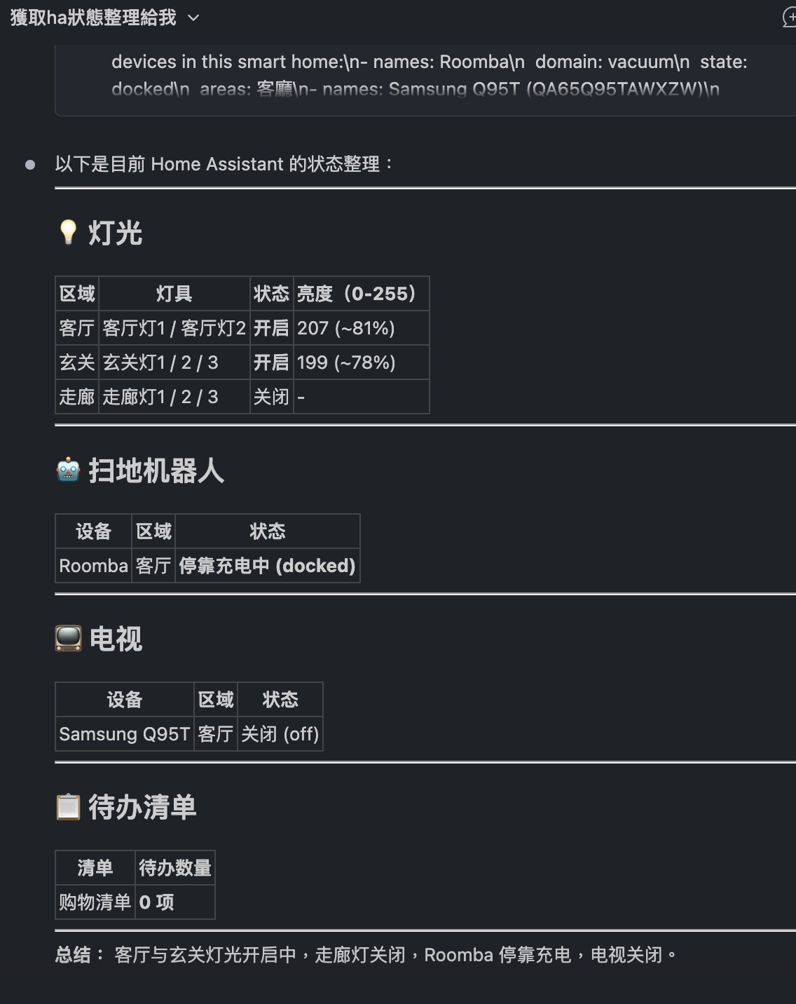 完成設定後,只要MCP成功連線,AI就可以直接控制家裡的智慧設備。